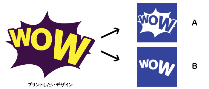 下記のデザインを色ごとに分けると、AとBのような2種類の版ができます。